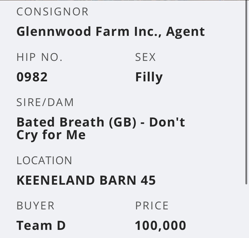Yes, my mother, father and their team of experts picked him out. KEESEP 2095 Yearling N/A Team D Glennwood Farm $200,000 Sold!